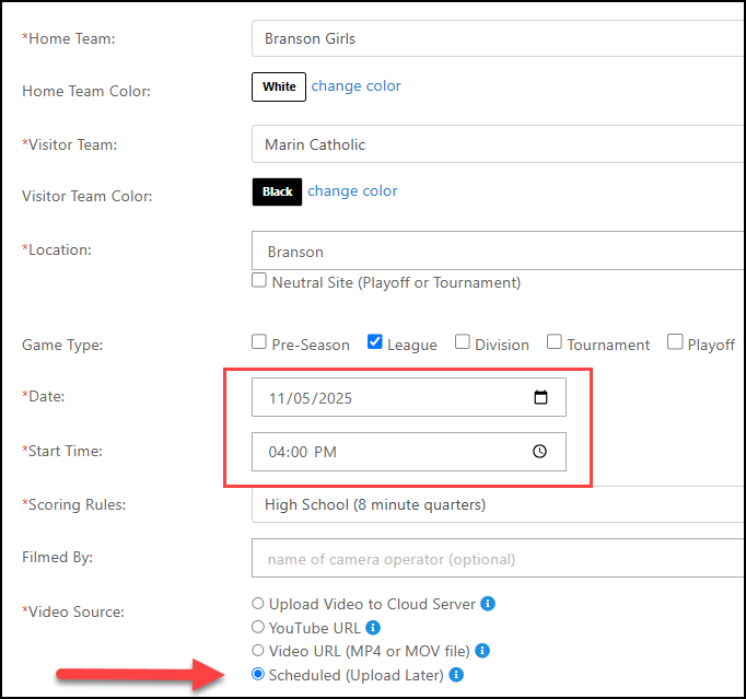 IMPORTANT! Any games you record need to be scheduled before uploading. Here's how it's done: